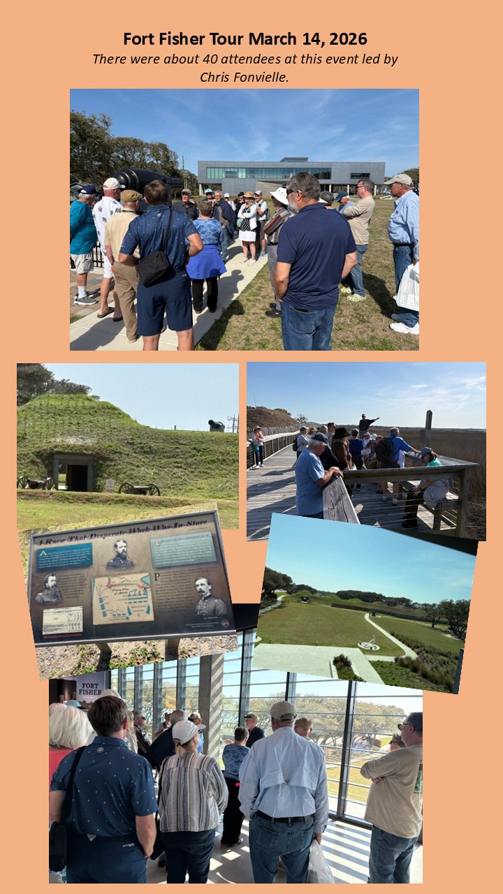 The BCWRT conducts tours of interesting Civil War sites, some as close as Brunswick County, others throughout the state that take a full day to visit, while still more are overnight trips. The tours are based on membership suggestions, as well as critical mass to hire the transportation, guides, etc